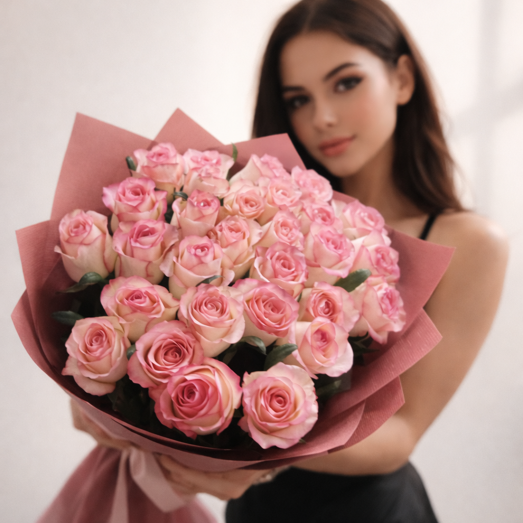 Розы сорт Джумилия (Jumilia), упаковка по желанию, атласная лента